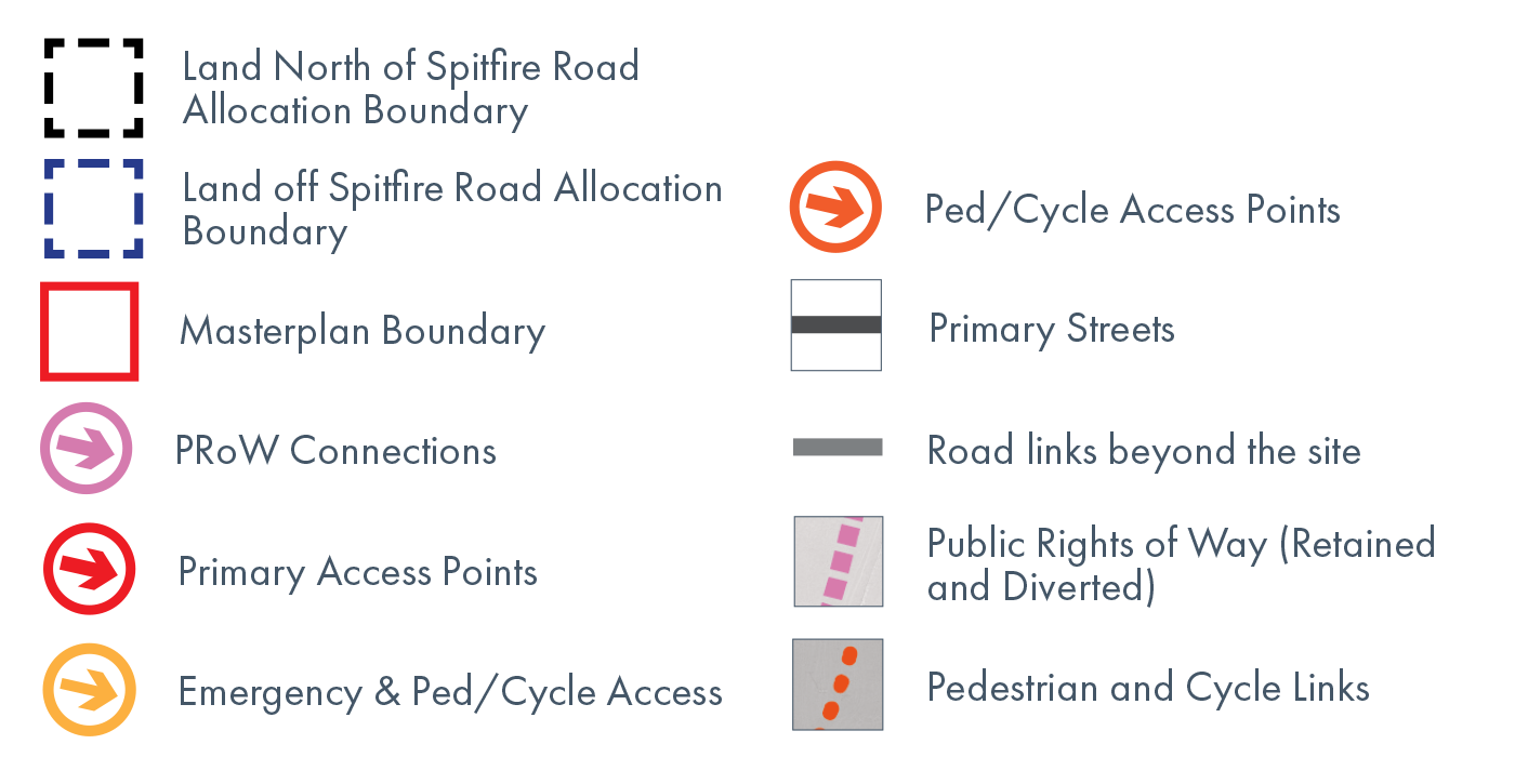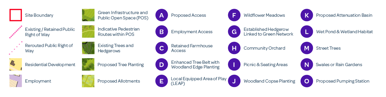 Promoting active travel via walking and cycling will be prioritised, focus on maintaining existing footpaths and public rights of way. Where this is not possible, footpaths will be diverted through the proposed open space.